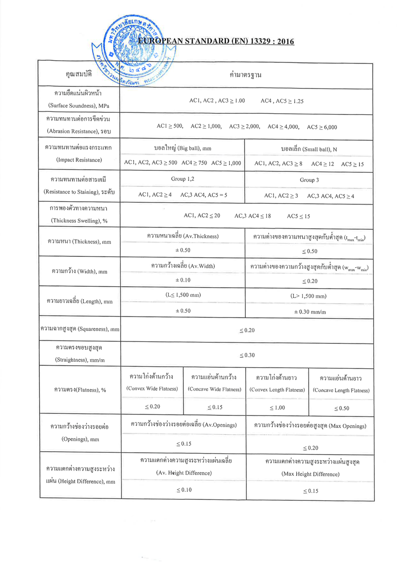 ใบรับรองคุณภาพไม้พื้น 12 มม.